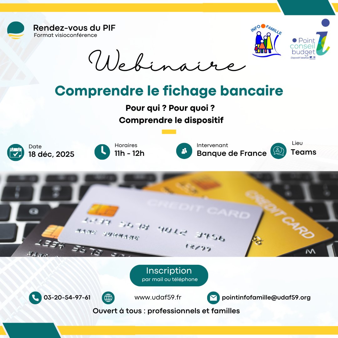 Pour clôturer l’année, le PIF et le Point Conseil Budget vous proposent un tout dernier webinaire sur le thème : « comprendre le fichage bancaire », animé par la banque de France.